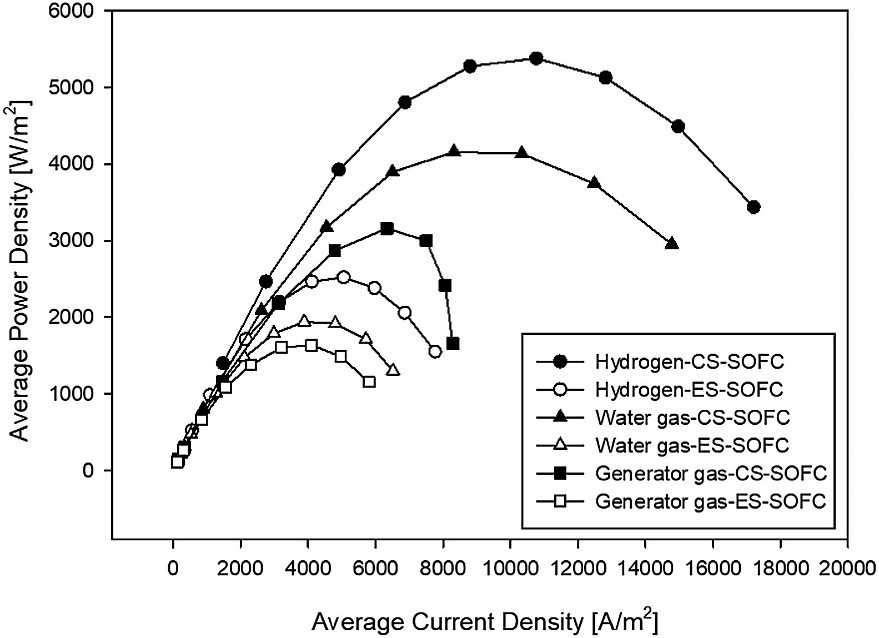最近,土耳其加济大学的Mustafa İlbaş在《International Journal of Hydrogen Energy》上发表了以“Modeling and analysis of a model solid oxide fuel cell running on low calorific value coal gases”为题的文章。文章研究了影响阴极支持的SOFC(CS-SOFC)模型的电池特性的参数。通过基于有限元方法(FEM)推导SOFC模型,利用低热值煤气,发生炉煤气和水煤气进行了数值建模。使用COMSOL软件模拟了燃料成分,温度,压力和孔隙率对已开发SOFC性能的影响。对于所有研究的燃料,CS-SOFC的性能都高于电解质支持的SOFC(ES-SOFC)。使用水煤气的SOFC的性能要高于发生炉煤气。这可能是因为水煤气中的氢含量比发生炉煤气高。因此,结果证实了低热值煤气可用于SOFC中作为燃料来源。此外,CS-SOFC的功率随压力,温度和氢含量的增加而增加。