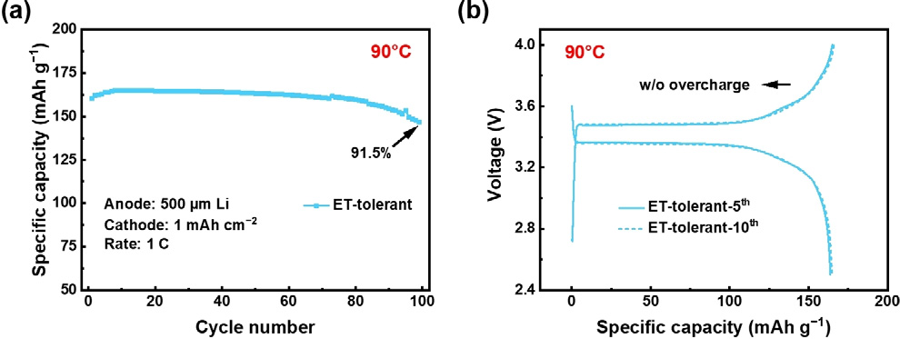 近期,清华大学的张强教授(通讯作者),在Angewandte Chemie期刊上发表题为“Can Lithium Metal Anode Cycle at 90°C in Liquid Electrolyte?”研究论文。文章研究了90°C高温下液态金属锂(Li)电池的工作状态,基于一种耐高温的电解质,研究了Li金属负极在90°C下工作的可行性。在90°C下工作的Li|LiFePO4 电池可以实现100次循环。