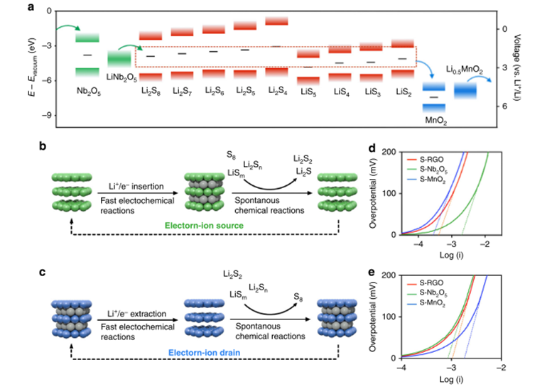 在这项工作中展示了可能的硫物种的电子和几何结构,并构建了一个电子能量图来揭示它们在电池中的反应路径,以及它们缓慢动力学的分子来源。通过解耦加速充放电过程的矛盾要求,选择了两种赝电容氧化物作为电子离子储存和释放源,分别实现了电子/Li+与硫中间体之间的高效传输。掺入双氧化物后,硫正极的电化学动力学显著加快。这种策略将快速电化学反应与自发化学反应相结合,绕过慢速电化学反应途径,提供了加速电化学反应的解决方案,为高能电池系统的发展提供了新的视角。