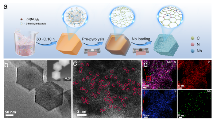 近日,哈尔滨工业大学的尹鸽平教授团队首次设计了锚定在 掺杂碳基体上的新型Nb-SAs催化剂(Nb-SAs@NC)作为LiPS的高效固定剂和催化剂。我们通过密度泛函理论(DFT)计算建立了M-N4位点的活性中心、电子结构和吸附能力之间的关系。受此启发,我们发现畸变的Nb−N位点导致dxz/yz和dz2能级增加,与传统的第四周期SAC相比,这使电子能够填充键合轨道并减少反键合轨道电子占据,导致加强dSAC和Li-S中间体之间的p轨道杂化并提供强硫亲和力。此外,Nb-N4部分为加速LiPSs的氧化还原动力学提供了足够的活性位点,进而实现了协同的“捕获-偶合-转化”机制,提高了Li-S电池的稳定性。因此,用Nb-SAs@NC组装的Li-S电池具有出色的倍率性能(7C时为740mAh g-1)和耐久性(4C时1000次循环后保持率为85%的超高保留率)。此外,这种先进的硫阴极提供了更高的面积容量,并且可以很容易地在可折叠/可弯曲的锂硫软包电池中实现,具有突出的机械稳定性,展示了有潜力的在商业应用前景。